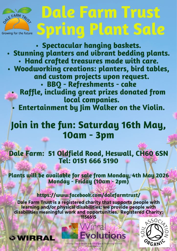 At the Dale Farm Plant Sale, we will have plenty of baskets, tubs and plants to brighten up your garden this year. Once you have chosen your plants why not relax with a drink and BBQ, whilst listening to some entertainment from Jim Walker and his violin.